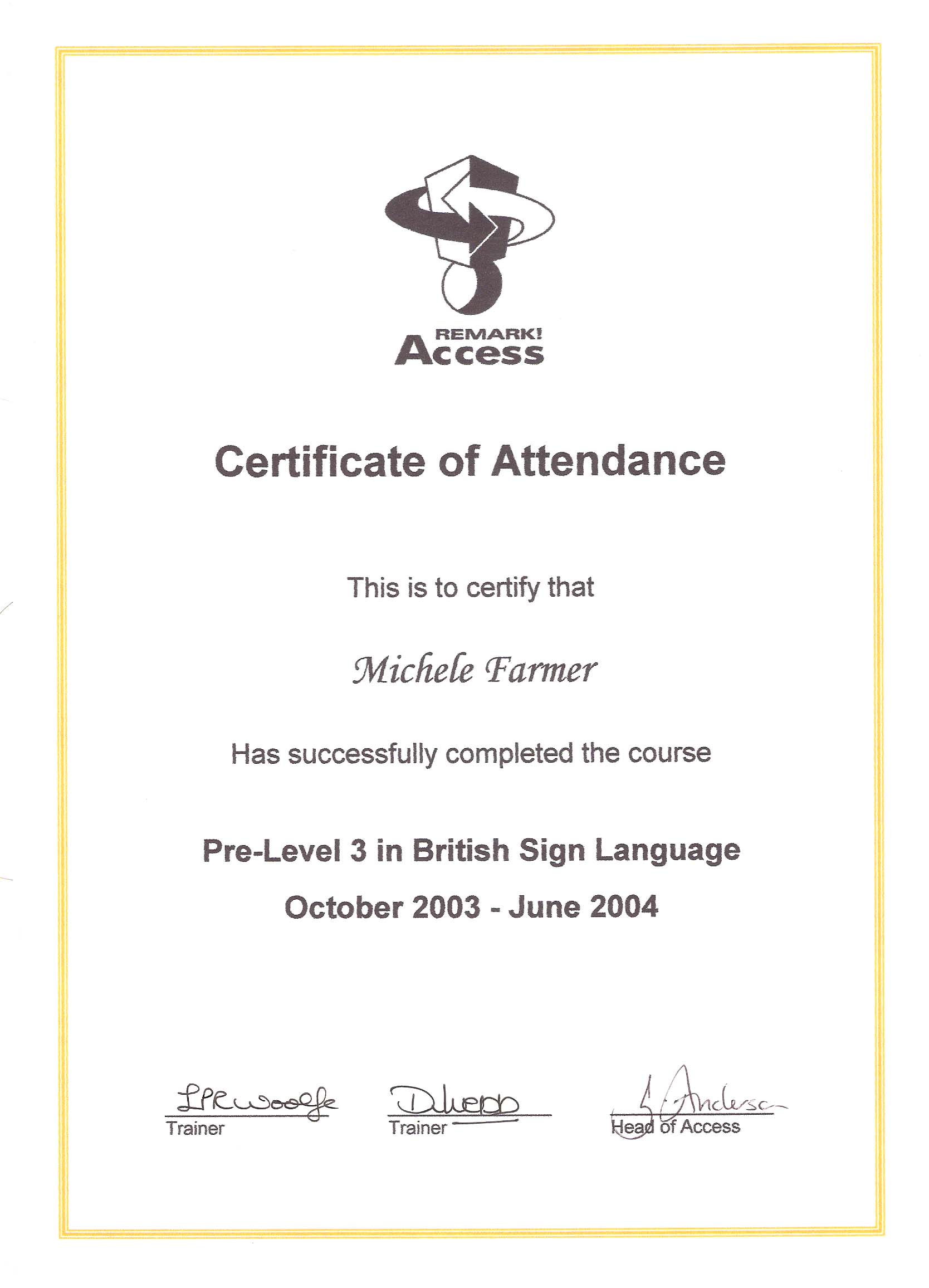 BSL Pre-stage 3 certificate